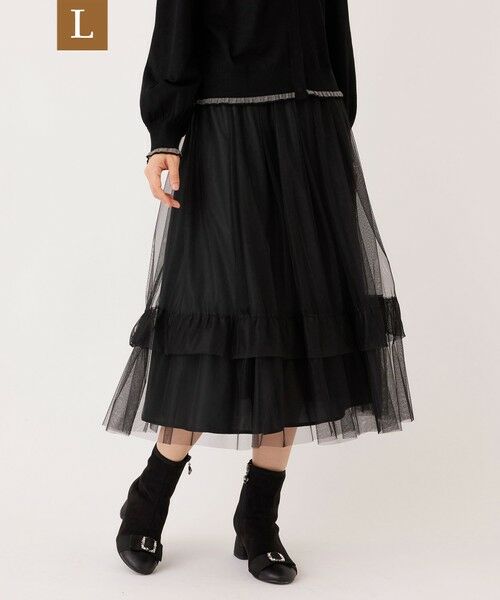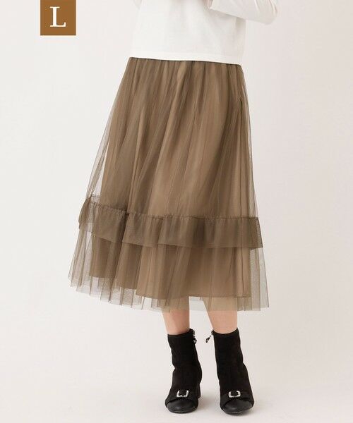 ウエスト部分にはグログラン素材を使用し、内側に平ゴムを仕込むことで快適なフィット感を実現。裾には幅広のタックを施し、その部分がやや濃く見えるよう工夫されています。さらに、タックの下にはギャザーを寄せて、ふんわりとしたフレア感を演出したボリュームスカートです。