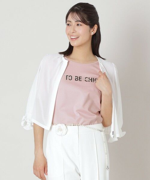 ビジューロゴ カットソー【素材】ハイゲージで編んでいるため、織物のようなきめ細やかな表情をしています。捲縮エステルを使用することで、伸縮のある生地になっています。加工では光沢を引き出すためシルケットとガス焼きを施し、毛羽を極限までカットしてドレープのきいた伸縮性のあるファブリックに仕上げています。【デザイン・コーディネートポイント】グリッタープリントのブランドロゴに、ガラスビジューとパールを繊細にあしらい、上品な華やかさを演出したロゴカットソーです。※この商品はサンプルでの撮影を行っています。実際の商品とイメージ、仕様が異なる場合がございます。