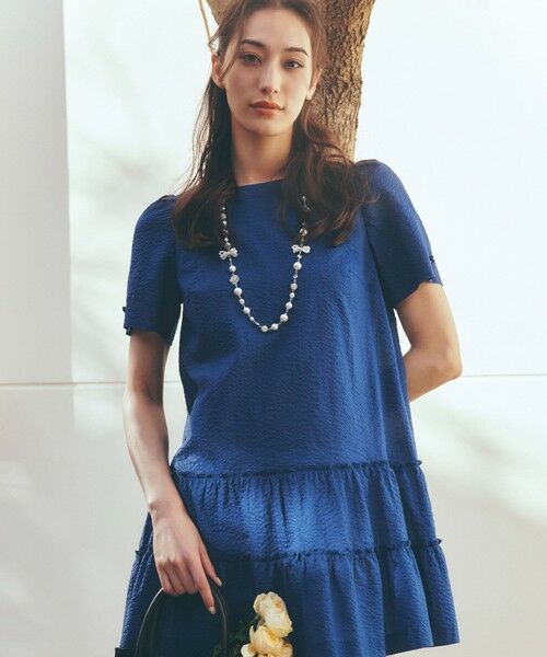 ウェーブローン ティアードチュニック【素材】国産の80ローンならではの軽やかでソフトな風合いをそのままに、リップル加工と縦ジワ加工を巧みに組み合わせることで、程よいハリと豊かな表情を加えた素材です。非常に柔らかな肌触りと軽さが魅力で、細やかな凹凸による肌離れの良さが、快適な着心地を叶えます。【デザイン・コーディネートポイント】全体を縦長のすっきりとしたシルエットに仕上げ、裾には二段のティアードデザインを施すことで華やかなアクセントを添えました。※この商品はサンプルでの撮影を行っています。実際の商品とイメージ、仕様が異なる場合がございます。
