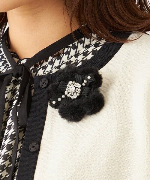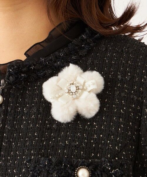 フェイクファーフラワーブローチ秋冬のルックにマッチするふわふわ可愛らしいフェイクファーブローチ。中心にはグログランテープをベースに、ビジュー・パール調パーツ・ビーズをミックスしたモチーフは手仕事が光ります。ニットトップスのアクセントに、アウターにも合わせて2個付けもなどもおたのしみいただけます。※この商品はサンプルでの撮影を行っています。実際の商品とイメージ、仕様が異なる場合がございます。