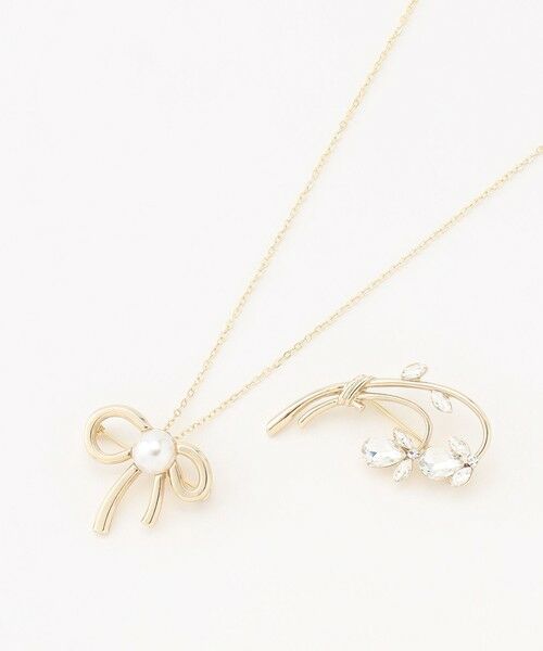 RIBBON&FLOWER BROOCH NECKLACE 2セット ブローチネックレス