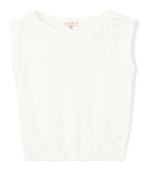 小さなスパンコールが編み込まれたサマーニットトップスです。光があたると柔らかにに輝きます。ヨーク部分のみメッシュ編みでデザインに変化をつけています。程良い上品な透け感があり、いつものスタイリングにプラスするだけで、トレンドを感じるコーディネートが完成します。裾には、フリルや波のような曲線を作り出す編み方のデザインをあしらうことにより、優雅で華やか、フェミニンな印象に。コンパクトな着丈と体のラインを拾わないサイズ感でリラックスした雰囲気です。