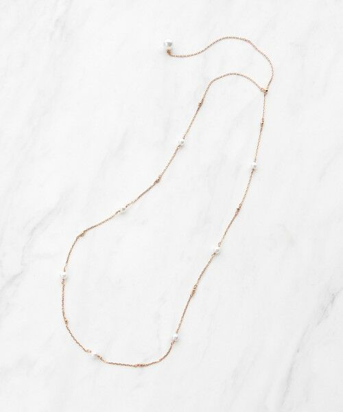 つややかなパールとカットの入ったメタルビーズをチェーン全体にリズミカルに散りばめたラリエットネックレス。チェーンの長さがスライドボールで調整できるので、スタイリングに合わせてパールやビーズのバランスを変えて楽しめます。ラリエット使いのほか、前後を変えると通常のシンプルなネックレスとしても着用頂けます。シンプルなトップスに合わせるだけでモダンで程よい華やかさを纏え、きれい目スタイリングはもちろん、Tシャツなどカジュアルなコーディネートのプラスワンにもおすすめのアイテムです。