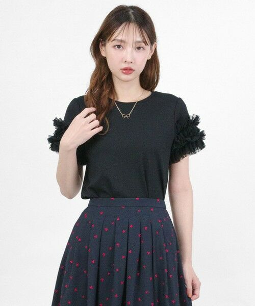 お袖に施されたチュールのフリルが、優雅でキュートな印象を与えるTシャツです。フリルはさりげなくも目を引き、着るだけでシンプルなコーディネートに遊び心とエレガンスをプラスしてくれます。形はシンプルで、様々なアイテムとも合わせやすく、デイリーコーディネートにぴったり。どんなボトムスにも馴染みやすく、パンツやスカート、さらにジャケットとの重ね着にも最適です。透けにくく着心地も良い肌に優しい素材感が、日常使いにおすすめです。