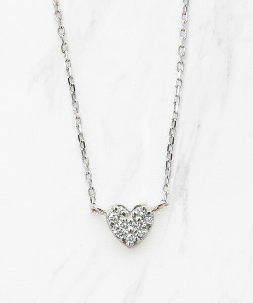 ハートのフォルムに細かなダイヤモンドを敷きつめた、シンプルなプラチナダイヤモンドネックレス。最小限の爪で1石ずつ丁寧にセッティングし、ダイヤモンドの輝きを最大限引き出しながら華やかな美しさを表現しています。