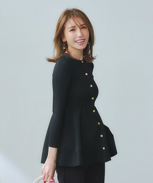 【素材】まだ残暑がある季節でも暑苦しくない軽量でしなやかな素材。 ペプラムのシルエットを綺麗にキープできる型崩れのしにくさもあります。 ツヤ感やきちんと感があり上品見えも叶います。