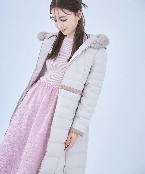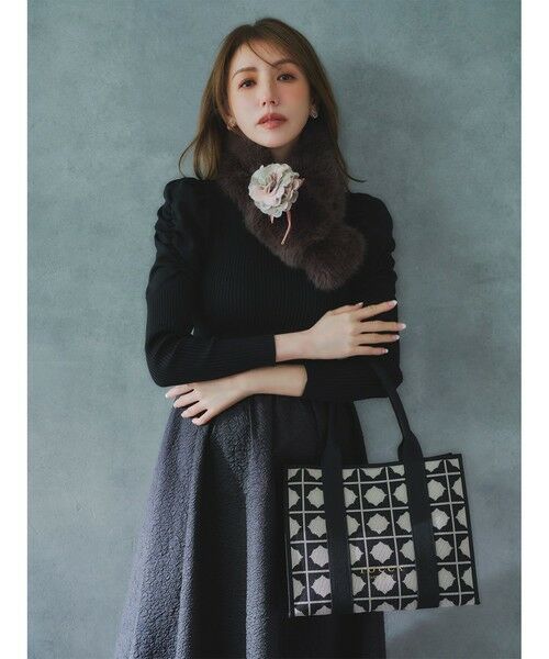リラックスした着心地と、きちんと感を兼ね備えたデザインで、上身頃はニット、スカート部分は布帛生地を使用した、異素材ドッキングが魅力のドレス。上身頃は柔らかくフィットするニット素材で仕立てられ、肩のラインにさりげなく施された華奢見えデザインがポイント。スカート部分には、トレンド感たっぷりの凹凸感のあるフラワージャカード生地を使用。動くたびにふわりと広がる美しいシルエットを描きます。ファスナーなどの留め具を使わず、すっぽりとかぶって着られるイージー仕様ながら、見た目はきちんと感のある仕上がりになっています。上にジャケットを羽織ったり、パールやゴールドのアクセサリーをプラスすることで、通勤や学校行事、オケージョンシーンにも対応可能。足元やバッグで印象を変えることで、オンオフ問わず着回しが効く万能アイテム。