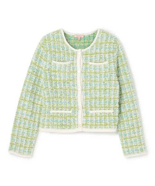 クラシカルな上品さと、ニットならではの柔らかな着心地を兼ね備えたツイードニットジャケット。かっちりとした印象を持つツイード素材でありながら、ニット仕立てにすることで身体にやさしく馴染み、堅苦しさを感じさせないリラックス感のある1着に仕上げました。オフィスシーンではきちんと感を演出しつつも、肩肘張らないエレガントな印象に。普段のデイリースタイルにもさっと羽織るだけで、装いに華やぎと品格を添えてくれます。さまざまな種類の糸を織り交ぜて丁寧に編み上げた表情豊かな編地は、立体感と奥行きのある仕上がりで、襟元や前立て、ポケット部分には締め色のストレート糸をあしらうことで、全体の印象を引き締めより洗練された雰囲気を演出しています。
