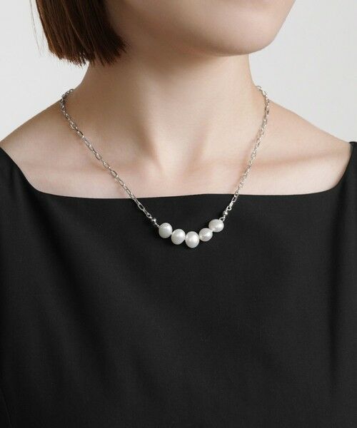 小粒の淡水バロックパールをぜいたくに使ったネックレスは、チェーンにあしらったゴールドビーズがさりげないアクセント。パールとチェーンをバランスよく組み合わせることで、重くなり過ぎず抜け感も叶うデザインに仕上げています。