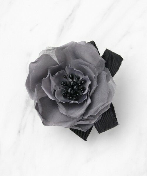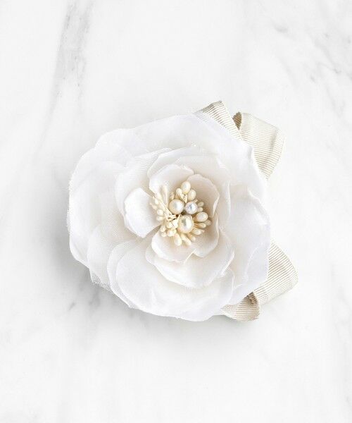 凛と咲くフラワーとロマンティックなリボンの表情が重なり合う、ノーブルなコサージュ。立体的で手の込んだ繊細なデザインでありながら、大き過ぎず上品な印象のアイテムです。