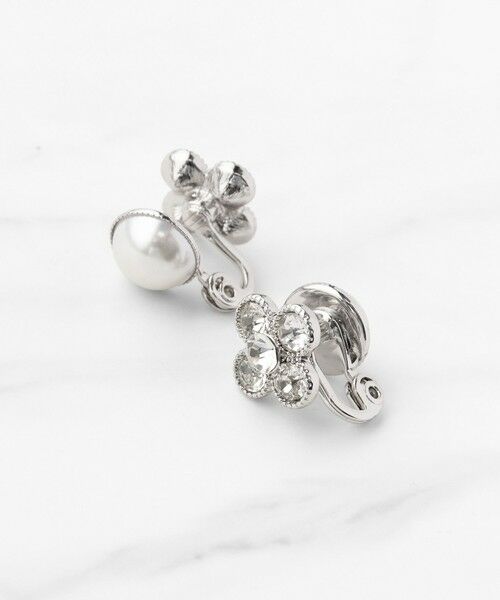 花々から解き放たれる薫り高い美しさをかたちどったイヤリング。大小のビジューを組み合わせてアンティークのようなミルテクスチャーで取り囲んだフラワーモチーフは、華やかさと落ち着いた清楚さを兼ね備えます。後ろにはパールをあしらっているので、前後2WAYでお使い頂けるデザイン。セレモニーシーンのシンプルなドレスのほかデイリーのカジュアルなコーディネートのワンポイントとして彩りを添えてくれます。