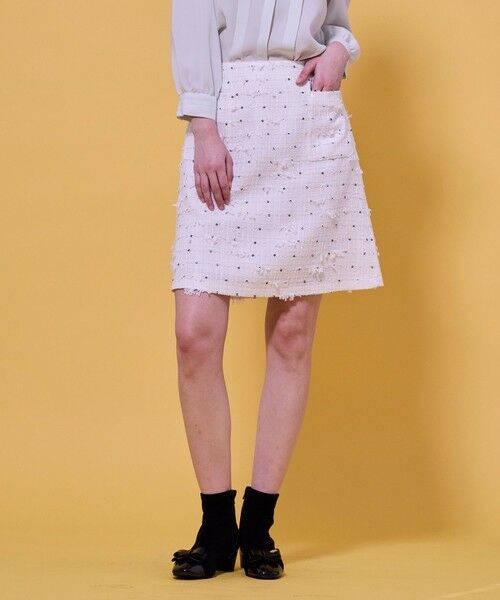 特別なシーンにはもちろん、シンプルなニットやブラウスと合わせて日常に取り入れることで、さりげない華やぎを添える一着。同素材のジャケットと合わせれば、より一層洗練されたスタイルを楽しんでいただけます。