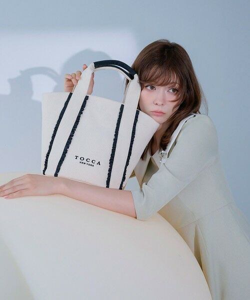 細かなフリルトリミングをアクセントにしたキャンバストート。口元や底などフォルムに丸みをもたせた優しいフェミニンなムード。シンプルでありながらも程よい甘さがプラスされ、モダンなたたずまいが光ります。