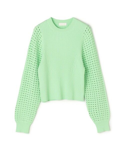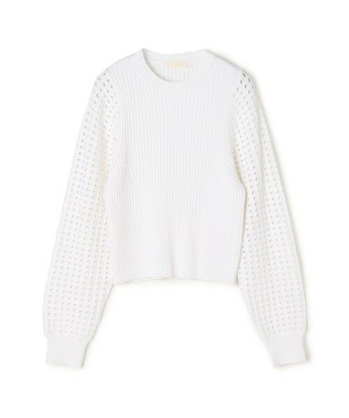 クルーネックプルオーバーは身頃をリブ組織に、袖をすかし柄にしたクラシックな雰囲気の一枚。