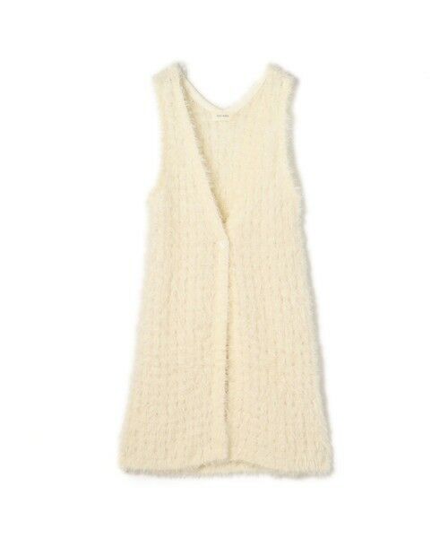 リンクス編みでチェック柄のような組織感のベストはコンパクトな肩幅とノーカラーのデザインですっきりとした印象の一枚。