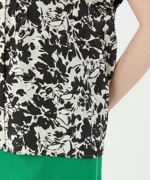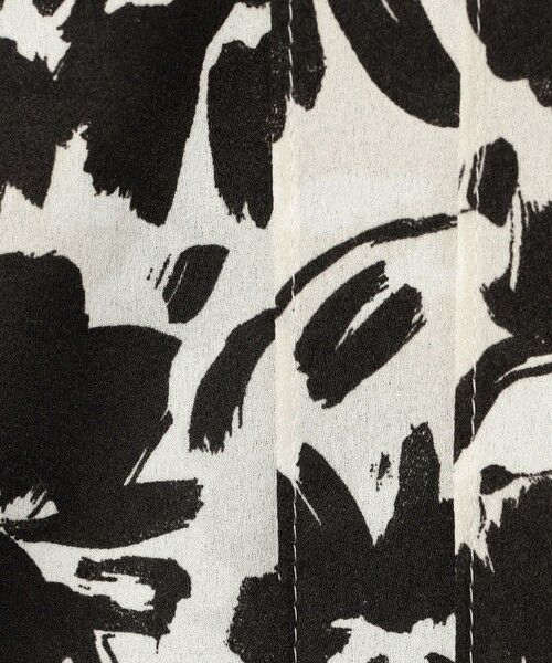 身長160㎝ プリント柄が目を引くブラウスは、モノトーンなので色物との相性も抜群。 一枚着としてはもちろん、ジャケットのインナーとしてもポイントになるアイテムです。 小物はブラックでまとめることで、統一感を出しました。