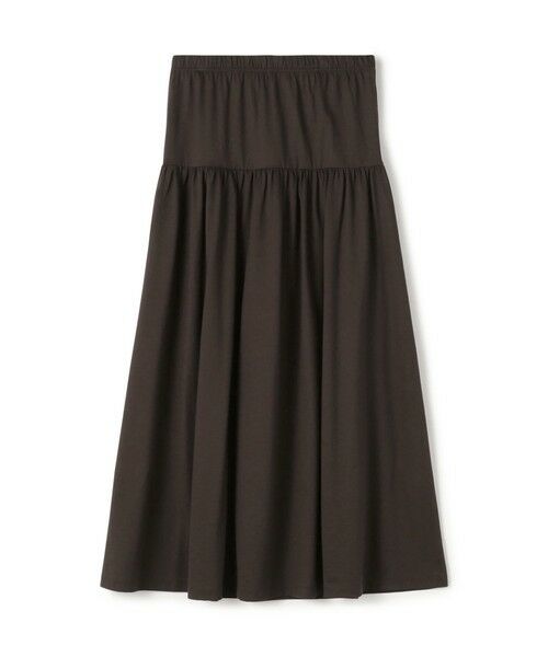 ヨーク部分にたっぷりと寄せたギャザーディテールがポイントのスカートは、しなやかなドレープ性でボリュームが出過ぎずきれいなシルエットの一着。
