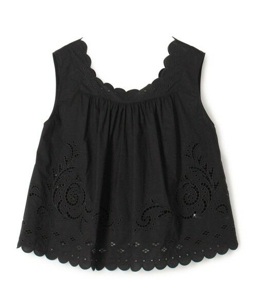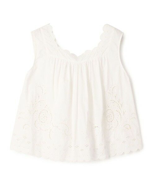 夏のバカンスをイメージしたブラウスは、襟ぐりや裾にスカラップを施すことでフェミニンな雰囲気に仕上げた一着。