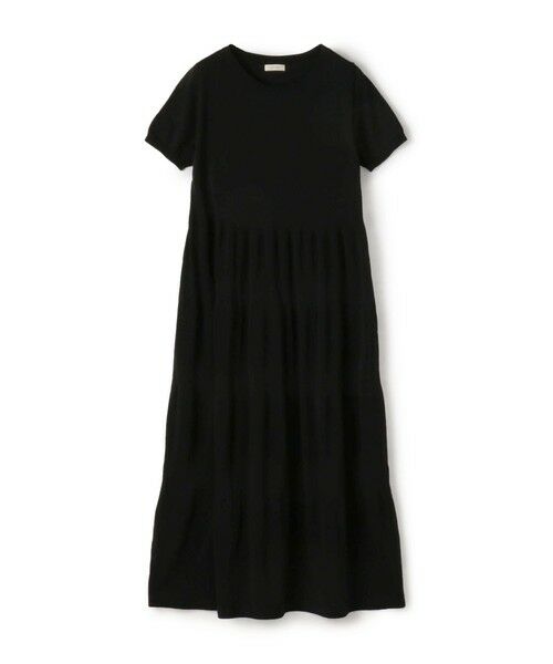ドレスはニット編みでギャザーを寄せたようなティアードフレアのシルエットを表現。