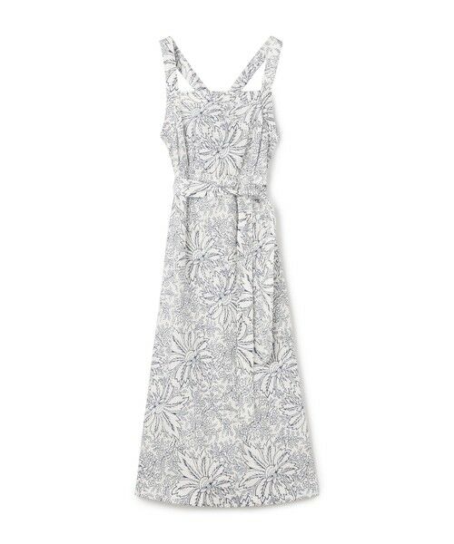 TOMORROWLAND / トゥモローランド ミニ丈・ひざ丈ワンピース | リネンプリント エプロンワンピース(68 ネイビー系)