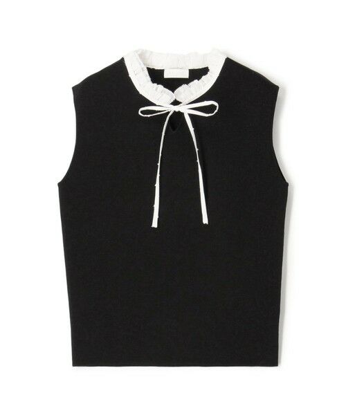 さらりとしたタッチが特徴の強撚コットンポリエステルのニット素材とドット刺繍を施した布帛素材をコンビ使いしたトップス。