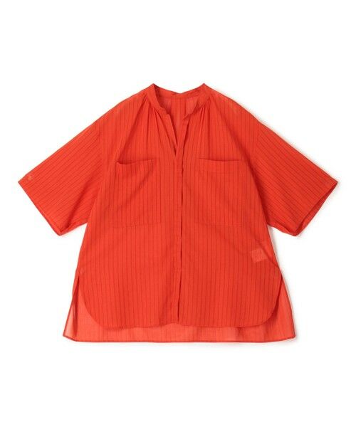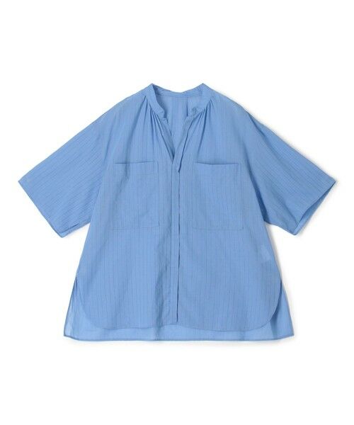 スキッパー開きで抜け感を出したバンドカラーデザインのチュニックブラウス。