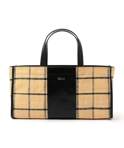 マダガスカル製のチェック柄ラフィアシートを使用したトートバッグ。
