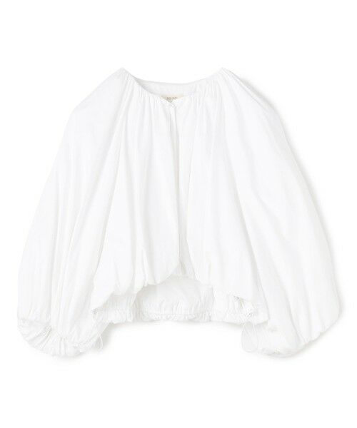 たっぷりとしたギャザーが襟元から入り、裾はバルーン仕上げにした分量感のあるフォルムが特徴的な一着。