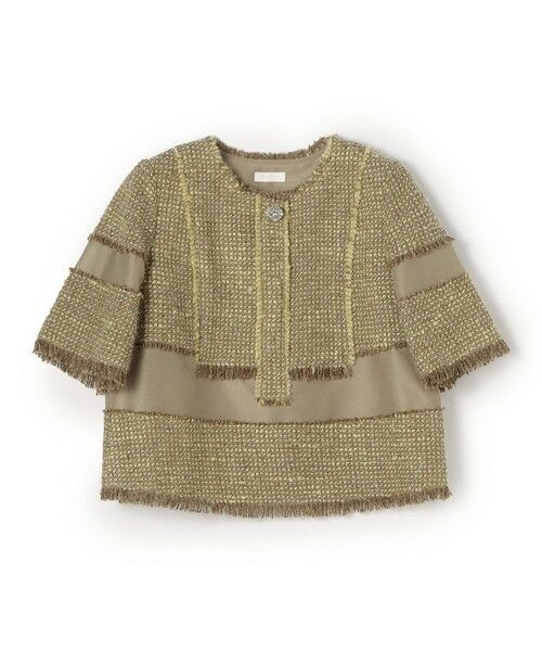 ラメのような輝きを持つスパーク糸が特徴のカラーツイード素材を使用したトップス。