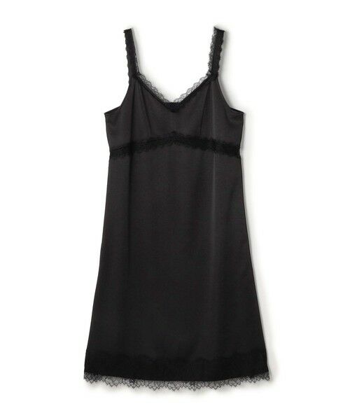 重みのあるサテンジョーゼットと繊細なリバーレースとのコンビネーションがセンシュアルなムードを漂わせるキャミソールワンピース。