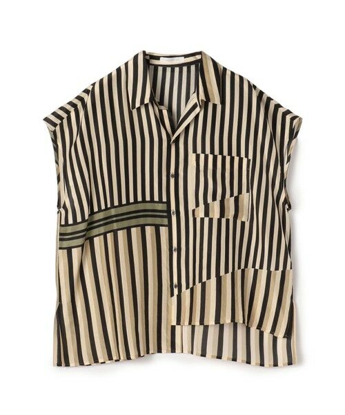 TOMORROWLAND / トゥモローランド シャツ・ブラウス | シルクハブタエストライププリント アシンメトリーヘムシャツ(46 ブラウン系)