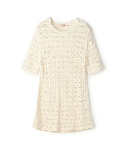 スカラップ型の襟元が特徴的なレトロ感のあるハーフスリーブニット。風合いや形状の違う同色の糸を組み合わせ、立体感のある透かしボーダー柄に仕上げました。デザインがありながらもベーシックなカラーリングは、ボトムスを選ばずに着用できます。Tシャツなどと重ね着もおすすめ。※商品の色味は、商品単体または素材アップ画像をご確認ください2025AW商品店舗にお問い合わせの際は、下記の商品番号をお申し付けください。商品番号:35-02-54-02102※※大変デリケートな素材です。素材表面の組織や糸質などから引っ掛けやすい為、やさしいお取扱いをお願いします。