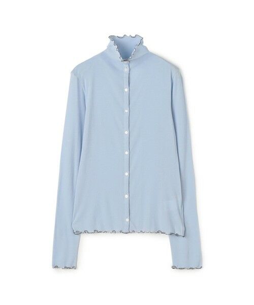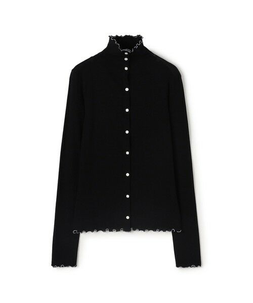 カーディガンはほど良くボディにフィットするシルエットに首元に優しく沿うビルドネックデザインでクリーンな印象の一着。