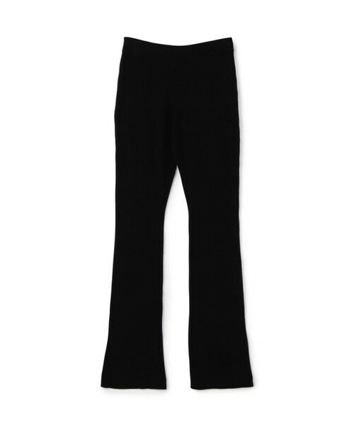 フィット感のあるヒップまわりに膝位置から緩やかに広がるフレアシルエットの2×2のリブ組織のレギンス。