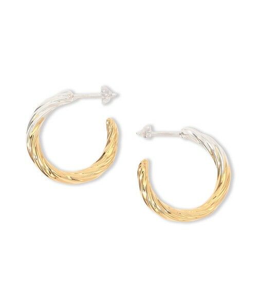 トレンドのバイカラーでツイストするラインが洗練された表情をつくり、よりモダンで大人な遊び心を添えるピアス。上品でありながら、カジュアルなテイストにも合う万能アイテムです。