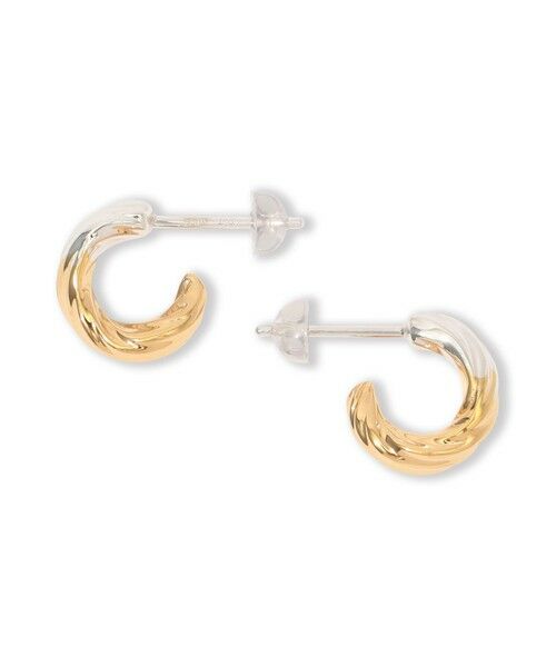 トレンドのバイカラーでツイストするラインが洗練された表情をつくり、よりモダンで大人な遊び心を添えるピアス。上品でありながら、カジュアルなテイストにも合う万能アイテムです。