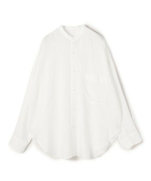 バンドカラーシャツはヒップの隠れる長めの着丈にゆったりとしたシルエット、ドロップショルダーのデザインでリラックスムード漂う一着。