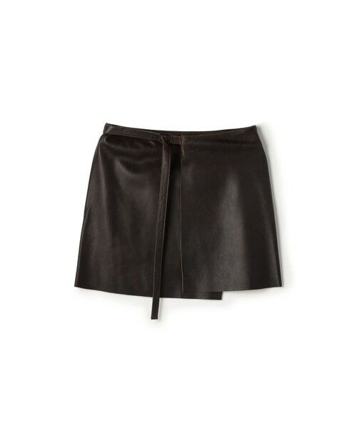 TOMORROWLAND / トゥモローランド ミニ・ひざ丈スカート | クラッシュレザー ラップミニスカート(49 ダークブラウン)