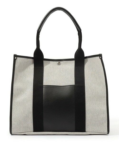 レザーパイピングでのトリミングや、バッグのフロント部分にはハンドルと同色のポケットが配され、ちょっとした小物やパスケースなどを収納することができます。