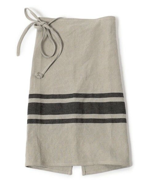 ベルギー産の高級リネンを使用し、織り込まれたトリプルストライプが特徴のスリーストライプ ハーフエプロン。