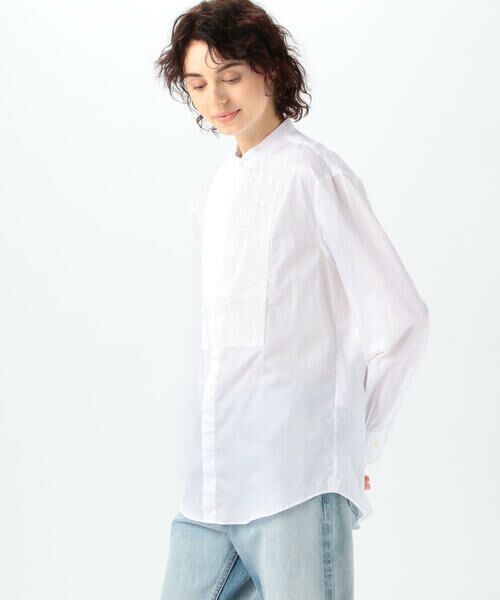 上質なコットンポプリン素材を使用したスタンドカラーシャツ。