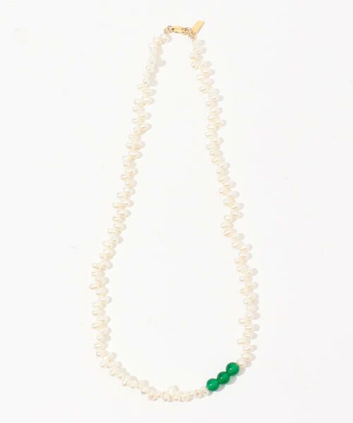 淡水パールにグリーンアガットをポイントで施したネックレス。