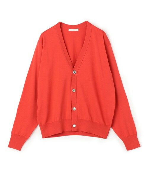 カーディガンはほど良くボディにフィットするシルエットに深めのVあきでクリーンな中にも女性らしさを感じる一着。