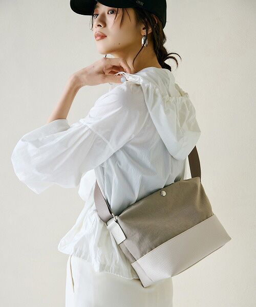 ナイロンにはしわ加工を施し軽やかな風合いにすることでスポーティーさを軽減、シルバーのホックをアクセントに効かせてキレイめなスタイルにもマッチする都会的な仕上がりに。