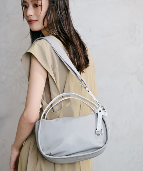 美しいツヤのナイロンを採用し、レザーとコンビネーションで仕上げることでエフォートレスなムードに落とし込みました。