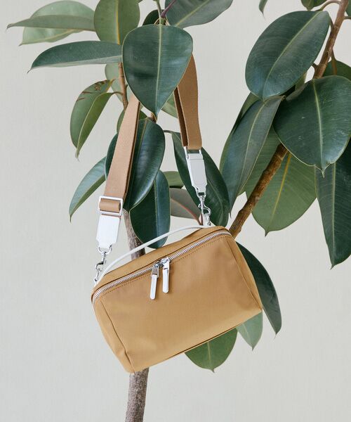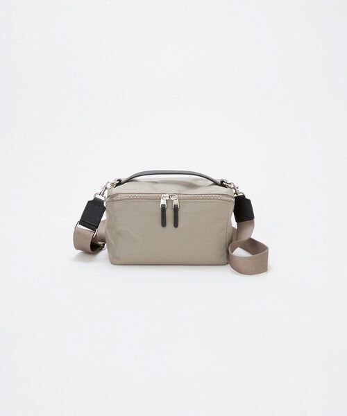 《ボックス型で鮮度を更新》大人のカジュアルスタイルにマッチするツイルナイロン素材のシリーズがお目見え。クールなムード漂うバニティ風ショルダーバッグは、ナイロンとメタルパーツのコンビネーションが印象的です。口元が大きく開くので中のものが取り出しやすく、内外には小物やスマートフォンの収納に最適なポケットを設計。生地には撥水加工を施し、ちょっとした雨なら弾く上に汚れがつきにくいのもうれしいポイントです。トレンド感が加速する、太幅のショルダーベルト付き。*ベージュのみ弱撥水となります※商品画像はサンプルのため、色味やサイズ、仕様等に変更が生じる場合がございますので、予めご了承ください。