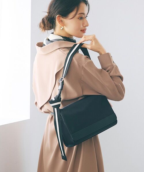 キレイめにもカジュアルにも似合うナイロン×レザーのショルダーバッグ。