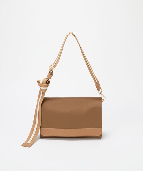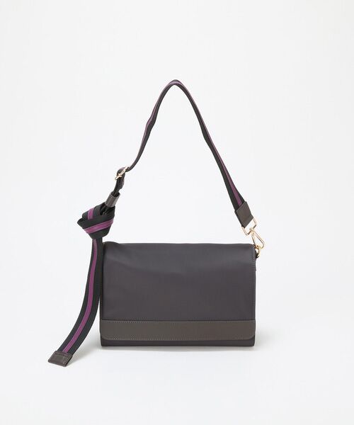 上品な光沢感のあるナイロン素材に、レザーをあしらったストライプ柄のテープショルダーで大人の遊び心をプラスしました。