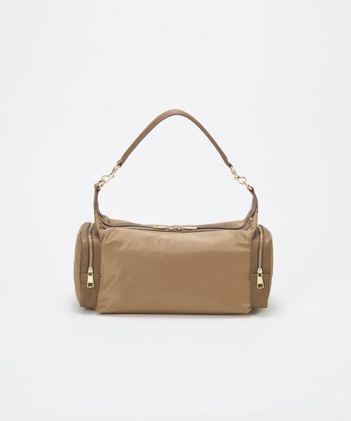 異素材ミックスながら同色のナイロン生地と牛革で仕立てた上品なデザイン。