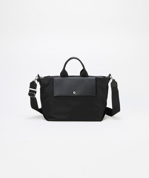 ナイロン素材のボディにスクエアフォルムのレザーフラップがシグネチャーで、きれいめにもカジュアルにもマッチ。
